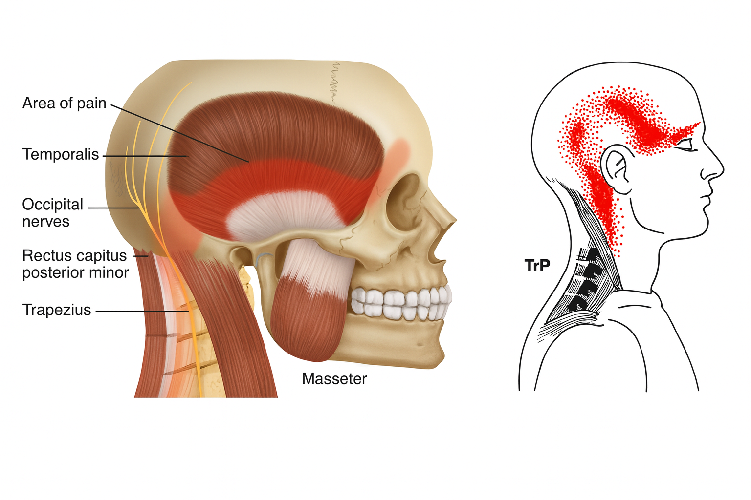 As the picture shows, there is a direct neurologic link between the pain fibers from the upper part of the neck and the trigeminal nerve. The trigeminal ner